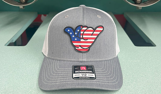 USA Flag PVC Patch Hang Loose - R112 SnapBack Heather Gray/Red