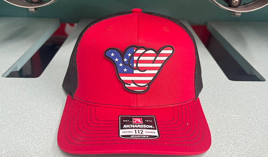 USA Flag PVC Patch Hang Loose - R112 Snapback Red/Black
