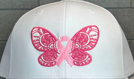Butterfly Cancer Ribbon Hat - Richardson 112 Solid White