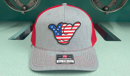 USA Flag PVC Patch Hang Loose - R112 SnapBack Heather Gray/Red