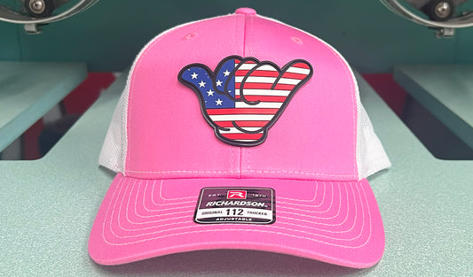 USA Flag PVC Patch Hang Loose - R112 Snapback Pink/White